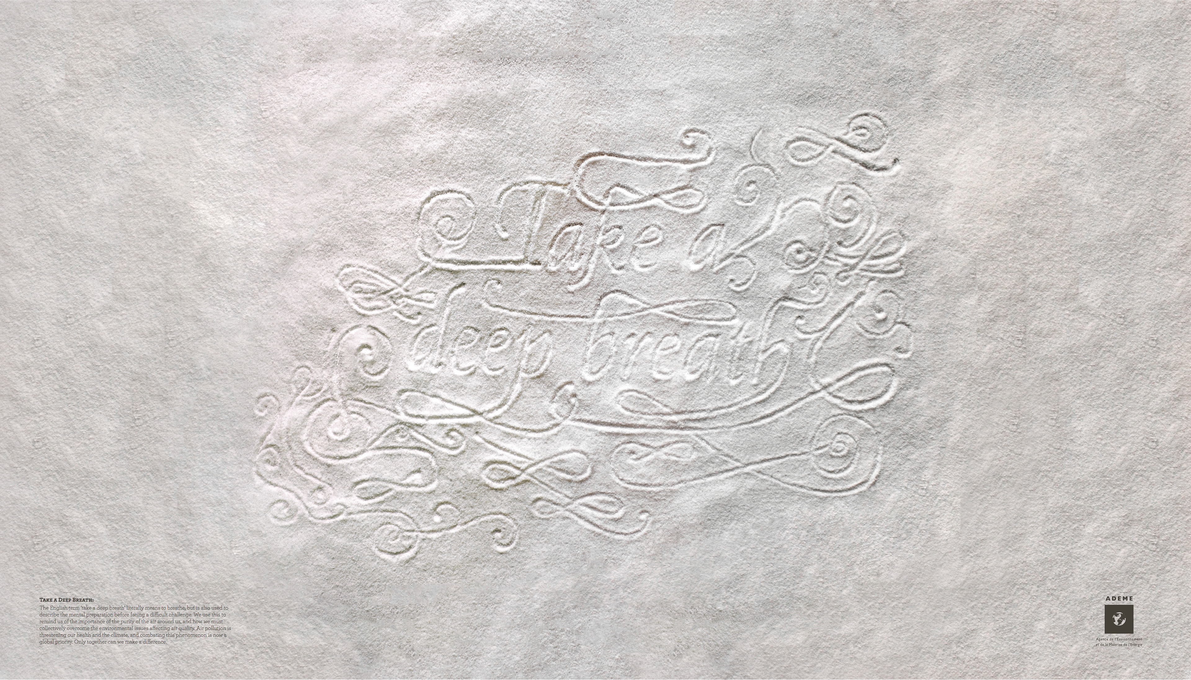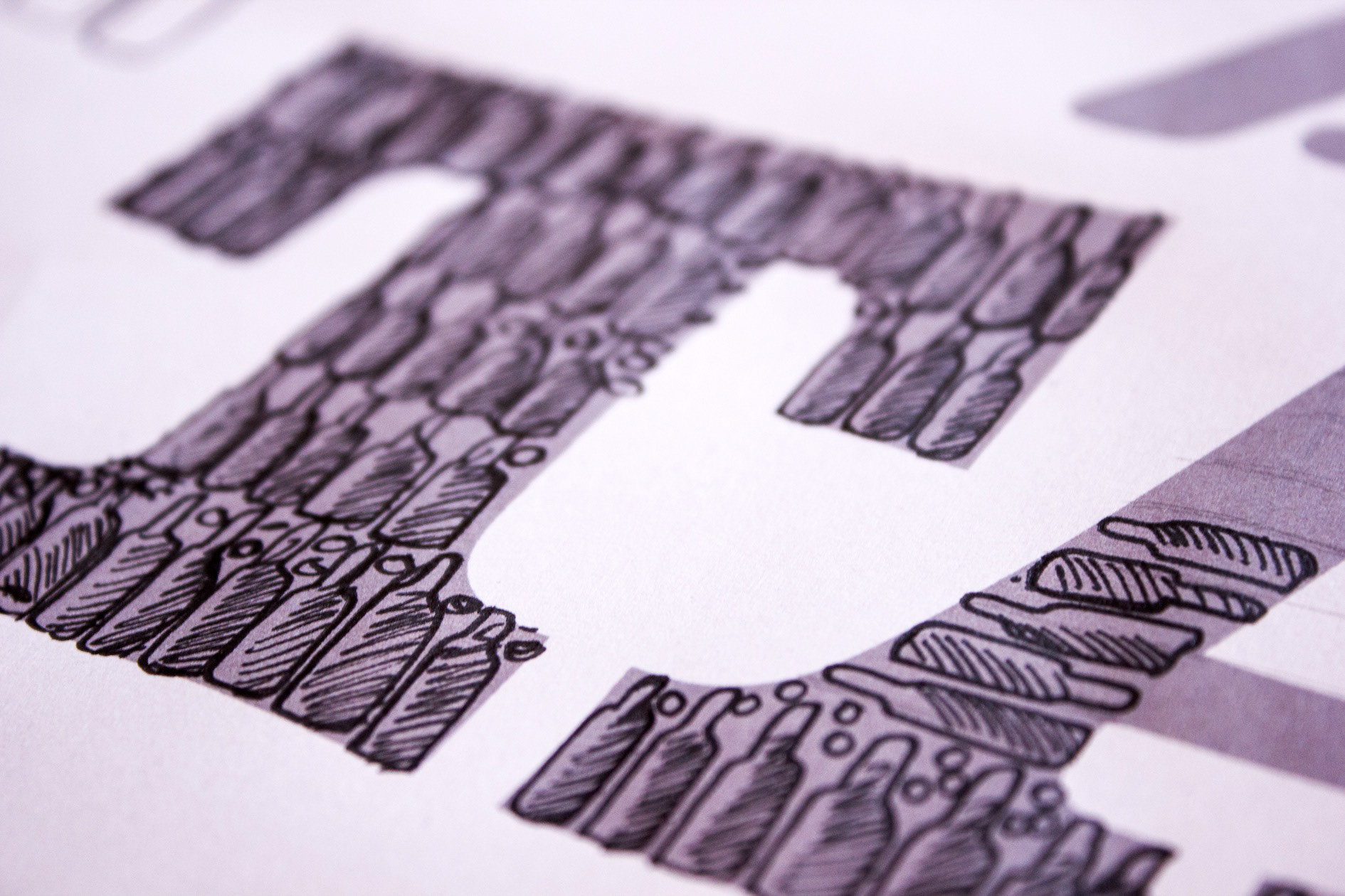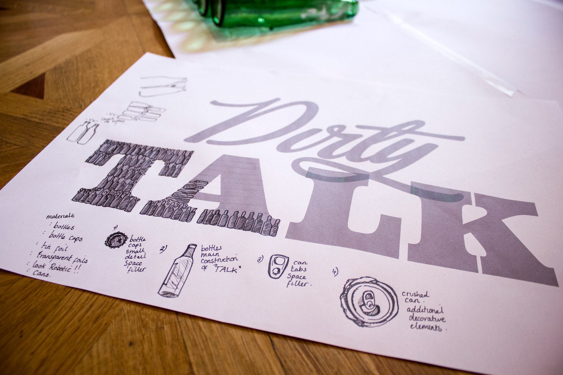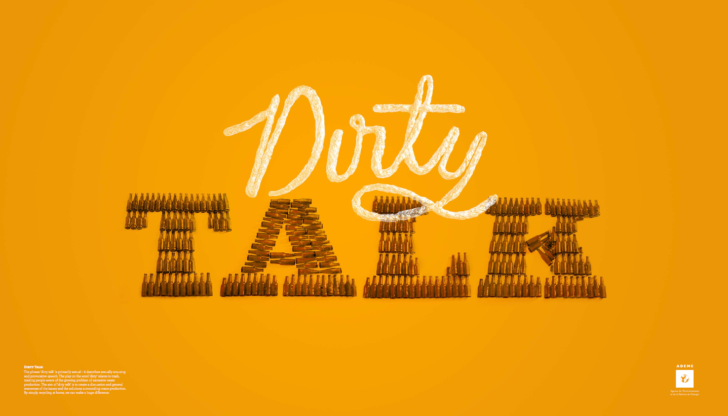 This project was a response to a live brief to promote environmental awareness among teens. The posters use idiomatic phrases which can be seen to focus on different environmental issues. 'Sticky Situation', referring to the BP oil spill, is accompanied by text on pollution; 'Take a Deep Breath' focuses on clean air; 'Remember our Roots' reminds the viewer of global warming; 'Dirty Talk' alludes to waste; and 'On Thin Ice' is a reminder of the melting polar ice caps. The type itself is made from unusual materials (bottles, ice, tin foil, soil …) which reflect the phrases.
