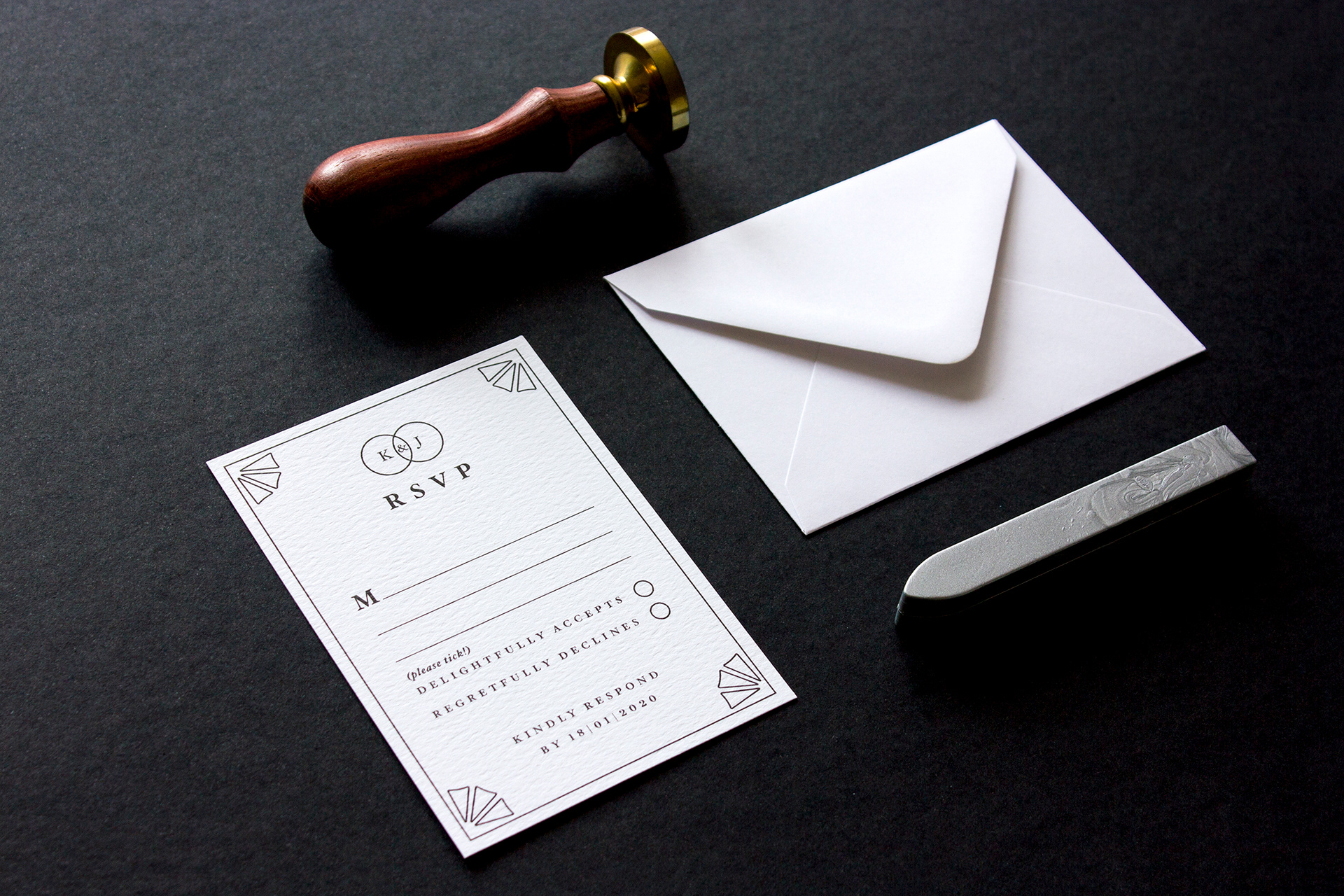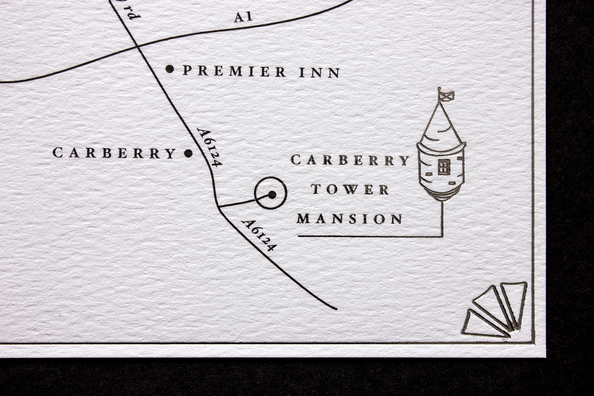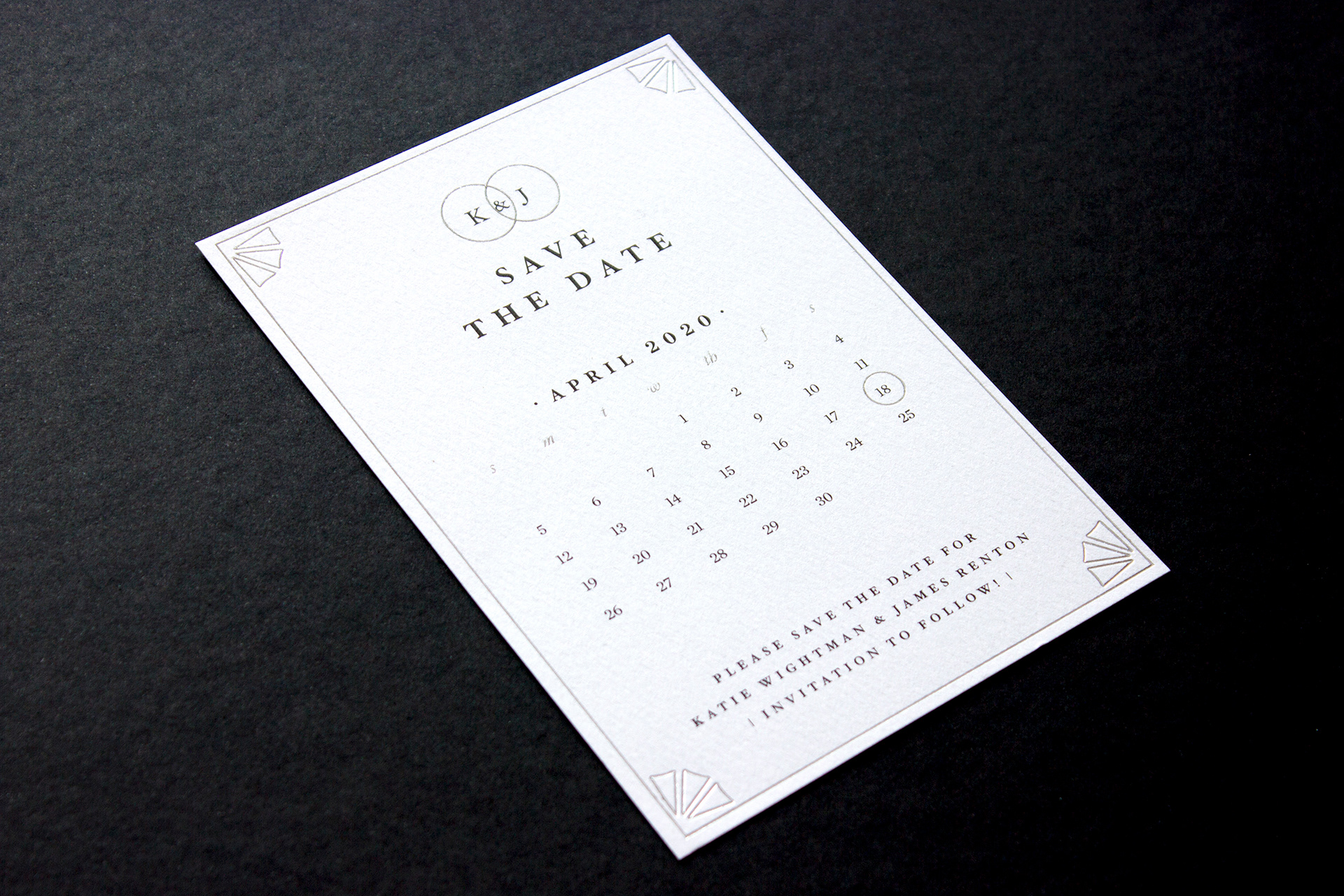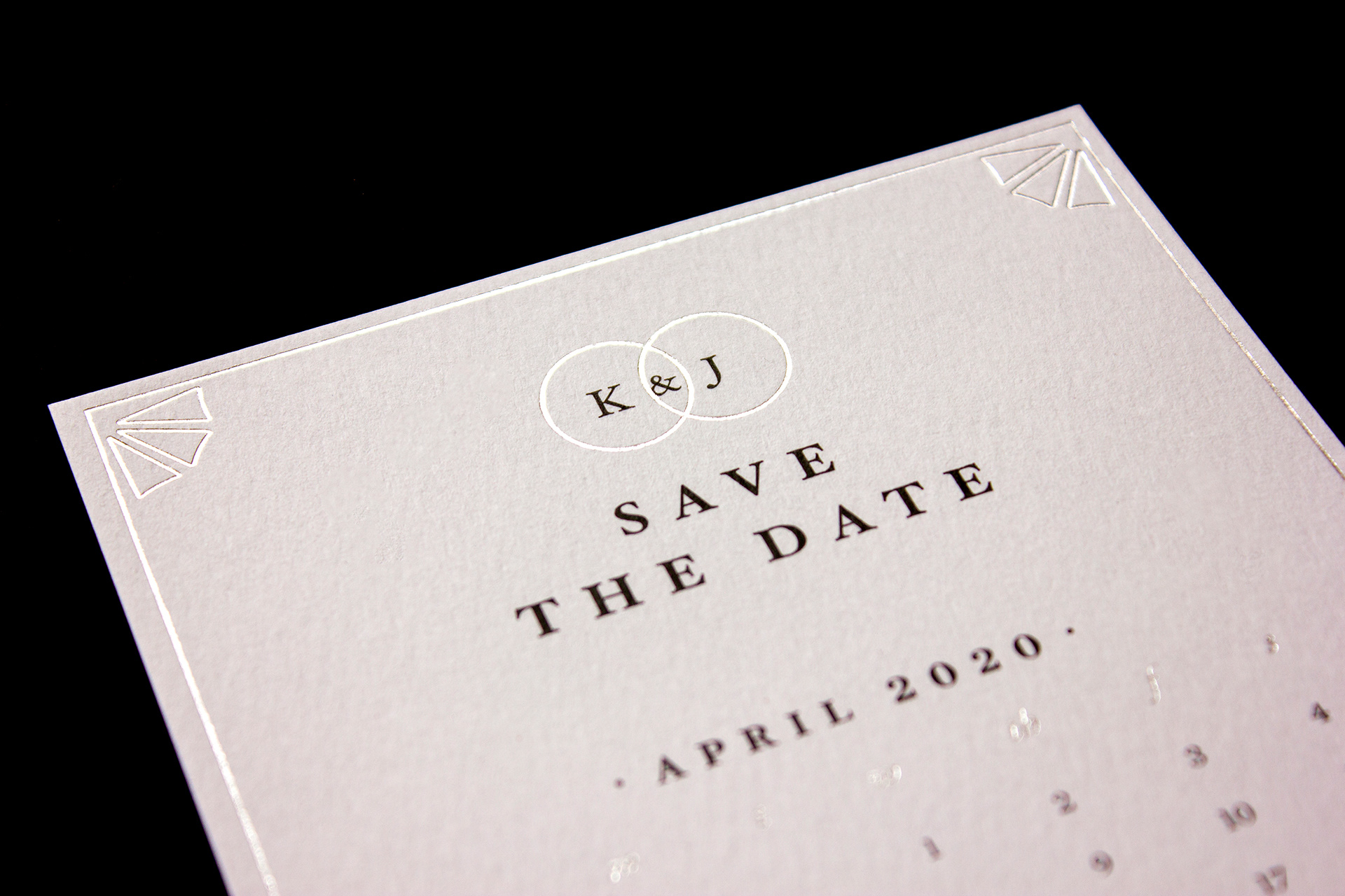 Bespoke wedding stationary created for Scottish couple Katie & Jamie. The logo lock-up was made up from their initials 'K&J' which are interlinked by two silver foiled wedding bands. Silver foil elements were used throughout all stationary highlighting details. The pack included a Ceremony invitation, Save The Date, Map, RSVP & details card. Each of which has a silver foiled border with designs from their wedding venue.