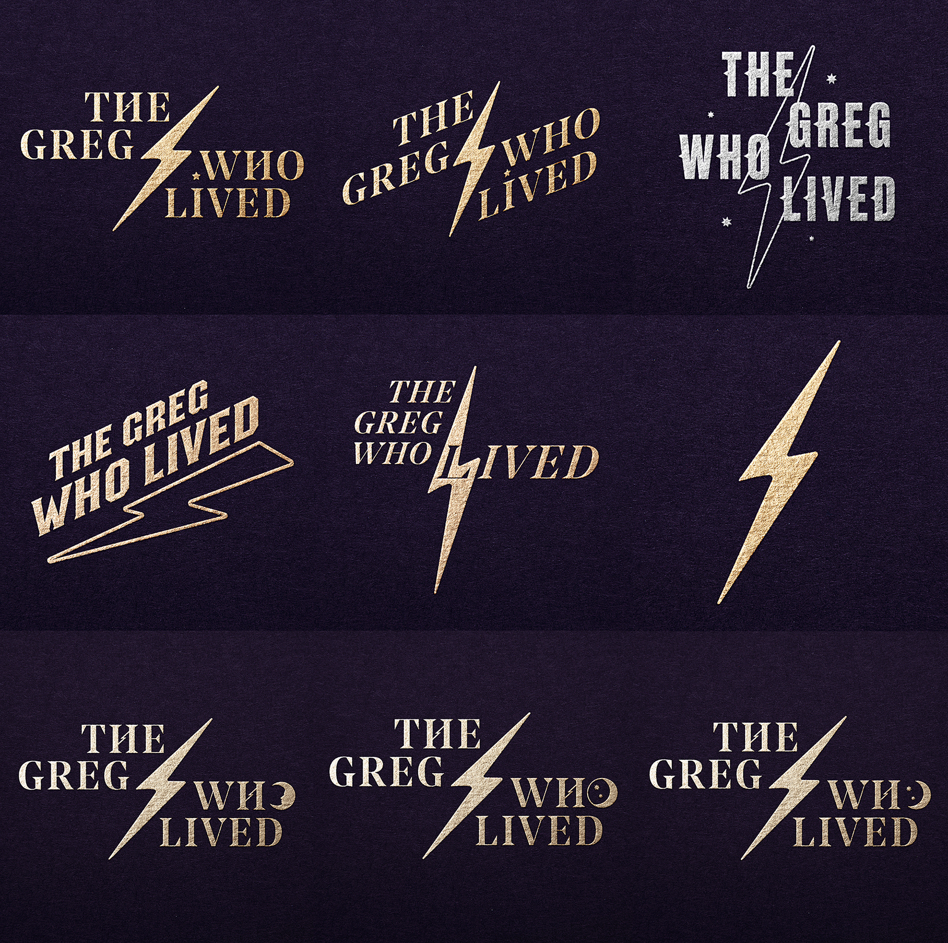 Brand identity created for 'The Greg Who Lived's new online shop, that will be selling a range of magical enamel pin badges. All inspired from the wizarding world of Harry Potter. It was important that the logo itself made links & connotations with Harry Potter himself. The lightning bolt symbols makes reference to ‘The boy Who Lived’s iconic scar. This little detail is also carried on to the crossbar of the ‘H’. The ‘O’ of ‘Who’ takes the shape of crescent moon with two little stars to allude to the theme of magic and wizardry.
