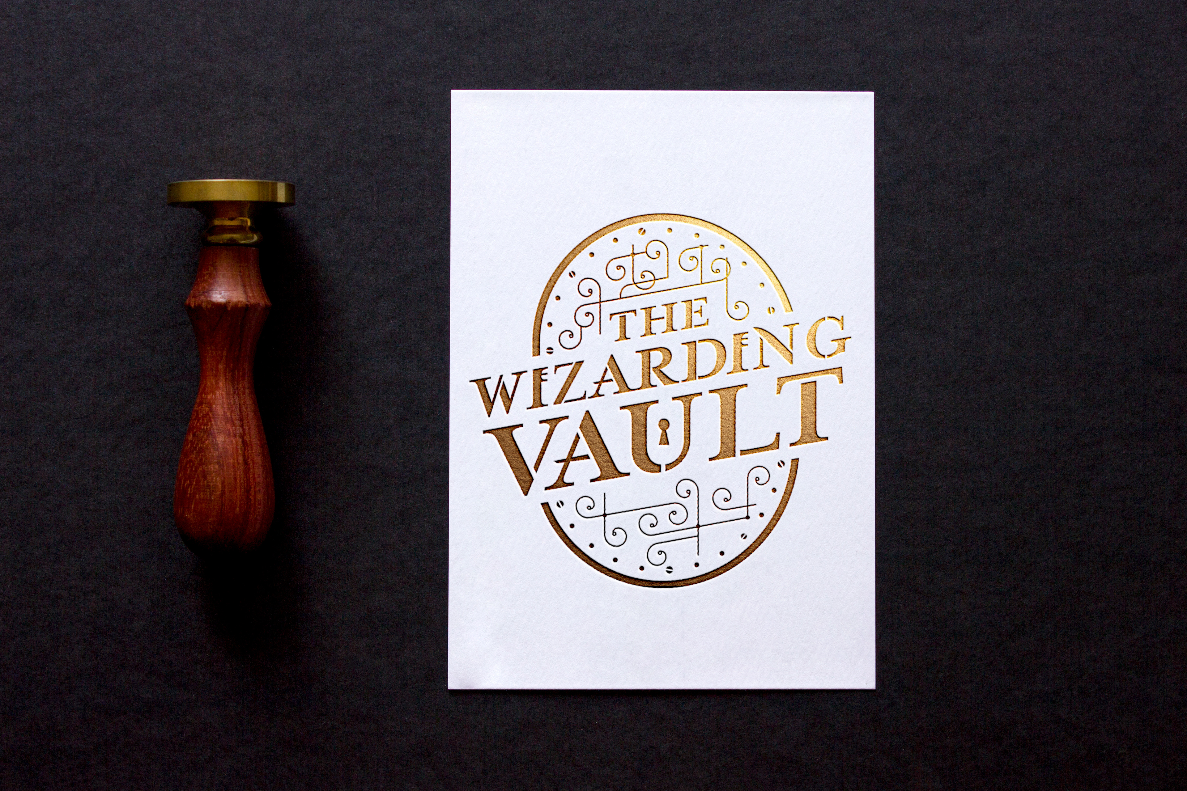 Branding created for Harry Potter blogger "The Wizarding Vault". It was important that the brand would fit in and belong within the wizarding world universe. A bank vault was the key visual direction for the logo, taking subtle characteristics and elements from the Gringotts Bank vault door which would feel familiar with Potter fans. The typography was also edited to make the "I"s resemble keys and a keyhole added within the "U" to continue the vault theme. Ornamentation and swirls from the mechanics of the Gringotts door was added to frame the typography.
